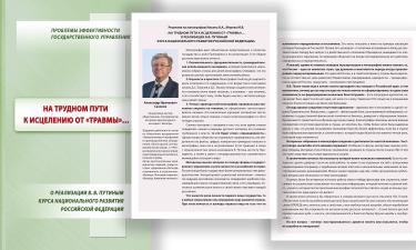 Рецензия на монографию «На трудном пути к исцелению от «травмы»… о реализации В.В. Путиным курса национального развития Российской Федерации», подготовленную членом-корреспондентом РАН В.А. Ильиным в соавторстве с к.э.н. М.В. Моревым